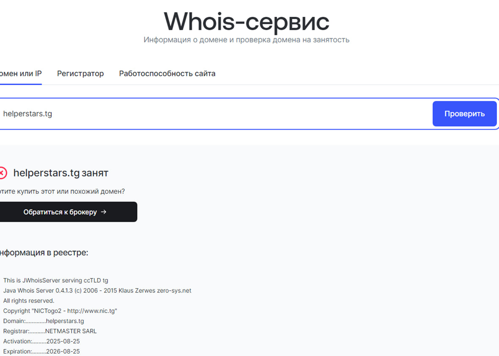 «Хелпер Старс Бот» не указывает точно, когда он был создан. Проверка домена показала, что в конце августа 2025 года. То есть, платформа проработала около 3 месяцев и почему-то уже считается мировым лидером. Сразу становится понятно, что цифры на сайте подкручены, как и положительная часть множества отзывов.Служба поддержки Helper Stars Robot