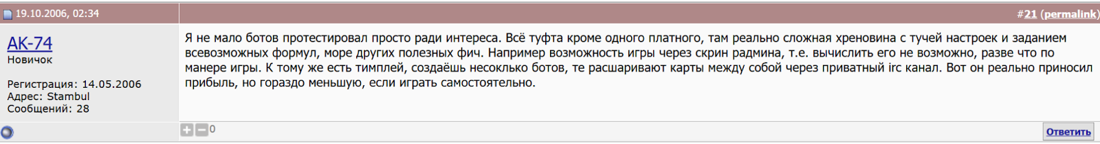 - нет отзывов реальных игроков, которые потребовали возможности Холдем Бота;
