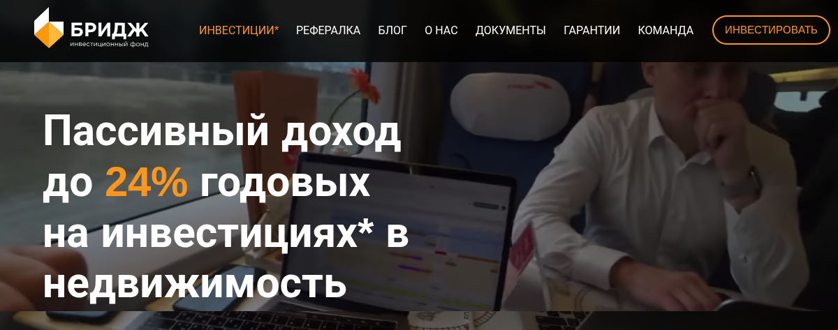 Фонд Бридж — инвестиционная компания с офисом в Санкт-Петербурге, которая занимается паевыми вложениями в недвижимость в СПб и окрестностях. Обещают пассивный доход до 24% годовых, если передать им деньги в доверительное управление финансами.