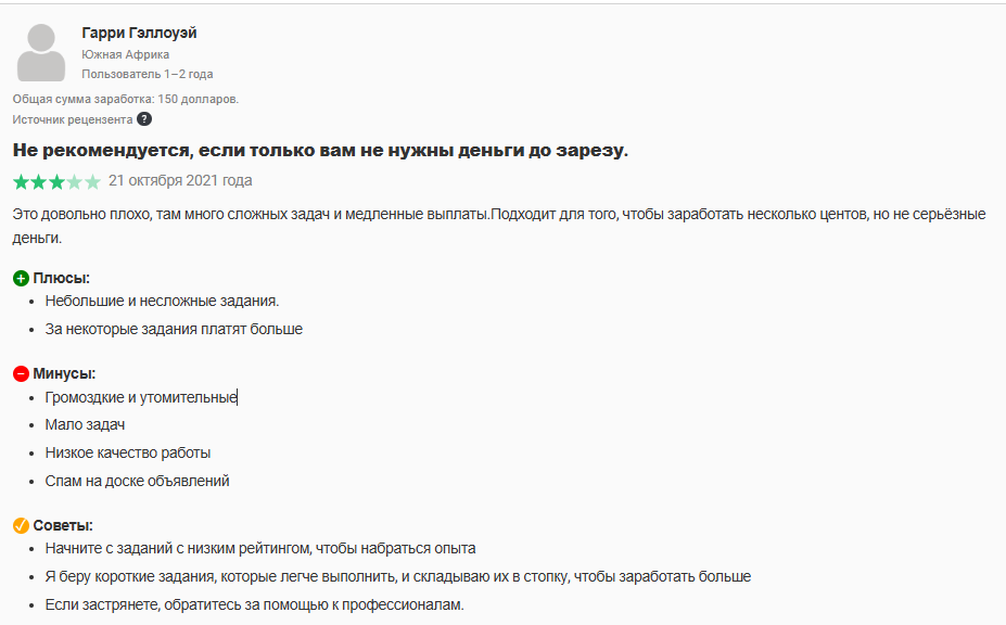 Преобладают упоминания о эксплуатации участников через недооплачиваемые задачи, высокой вероятности отказа в оплате со стороны работодателей без объяснений и отсутствии механизма обжалования. Фирма ненадежна и может работать как мошенническая схема. Пользователи сообщают о минимальном заработке в $3 за недели работы, о задачах с жесткими лимитами времени и частых закрытиях заданий до завершения.