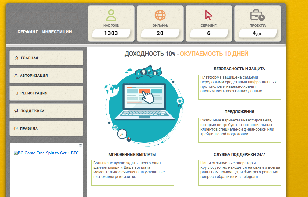 Основной тариф – 3% ежедневно. Альтернативный план – 10% за 10 дней окупаемости. Откуда берется такая прибыль – не объясняли. Магия блокчейна, видимо. Но в реальности такие цифры не реалистичны.