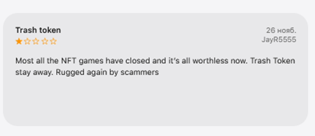 Но большая часть комментариев отрицательная. Некоторые пользователи жалуются, что приложение не работает, на него не стоит тратить время. По словам других клиентов, предлагаемые игры уже не активны, непонятно, зачем они включаются в список. Также есть обвинения в скаме, пропаже токенов из кошелька.