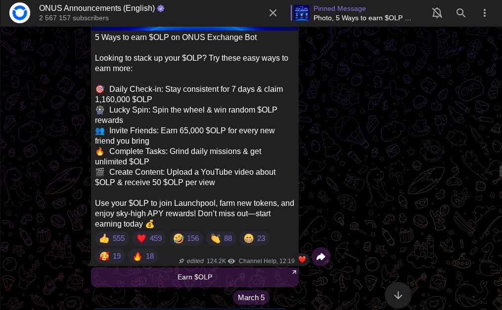 OnusTapbot — проект, который команда создателей представила в формате игры, позволяющей заработать монетки. Новые токены с тапалки пользователи смогут продать на бирже после airdrop и листинга. За счет бесплатной криптовалюты разработчики данного проекта пытаются привлечь к себе внимание. Помимо этого, создатели в очередной раз называют свою платформу лучшей в телеграмме и пишут, что абсолютно все пользователи играют и зарабатывают на популярной концепции каждый раз.