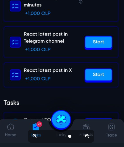 За набор рефералов пользователь получает от 5000 $OLP. Если игроки выполняют задания, игра вознаграждает фармера еще 10 000 $OLP.