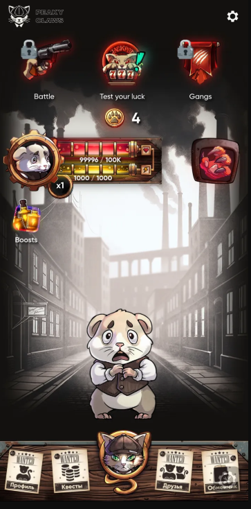 В игре PeakyClaws зарегистрироваться могут все, кто имеет аккаунт в Телеграме. Достаточно принять условия соглашения и можно начинать игру. Суть заключается в том, что своим персонажем нужно избивать хомяков и отбирать у них деньги. Чем лучше оружие у игрока, тем больше он сможет отобрать финансов. Во время игры можно использовать разные бусты, прокачивать имеющееся оборудование, что повысит шансы на успех. Игроки могут приглашать друзей, получая за это бонусы. Вместе можно проходить квесты и получать еще больше. Вывод доступен на TON-кошелек, который потребуется привязать к аккаунту.