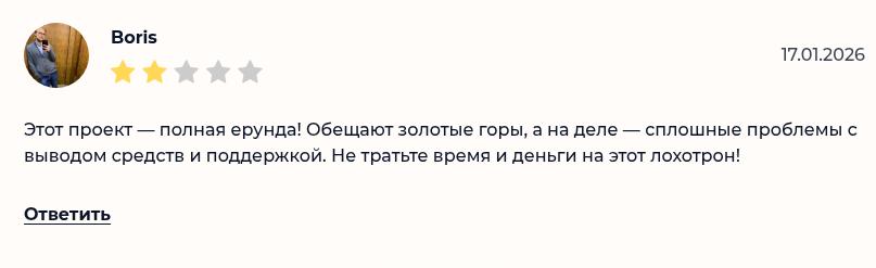 4. Отзывов о проекте мало, а те, что есть, исключительно негативные — «бот не платит», «зря потратил время» и т.п.