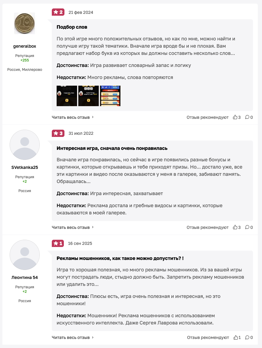 Отзывы об игре «Повар слов» смешанные. Авторы положительных ревью пишут, что данное приложение позволяет интересно скоротать время.