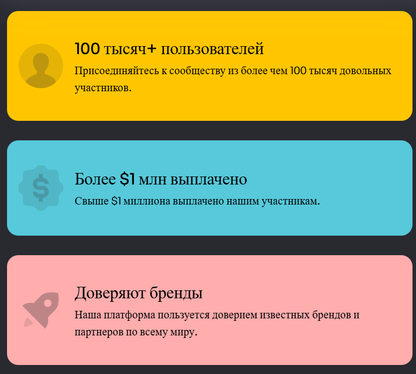 Разработчики отмечают простоту получения заработка без внесения первоначального платежа. При этом клиентов заверяют в полной безопасности и сохранении конфиденциальности. Для получения заданий нужна верификация. Ее необходимость появляется после заработка первого USD. Сразу после этого участник добавляется в очередь на проверку личности.Для ускорения верификации важно добавлять новые записи в соцсетях и приглашать друзей. После проверки личности пользователь может выводить деньги в течение 1-2 часов с момента подачи запроса.