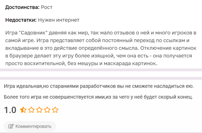 В интернете встречаются отзывы о проекте «Садовник», где игру называют лохотроном и рекомендуют не вкладывать деньги. Потерять время, деньги и нервы просто. Пополнение счета для покупки донатов и инструментов, которые обещают ускорение заработка, на деле приводит к убыткам без реальных выплат.