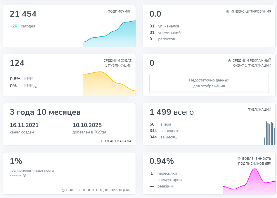 В шапке канала сказано, что здесь каждый найдет новости индустрии, аналитические обзоры и рыночные стратегии. Согласно статистике, на середину октября 2025 г. на канале 21 451 подписчик.