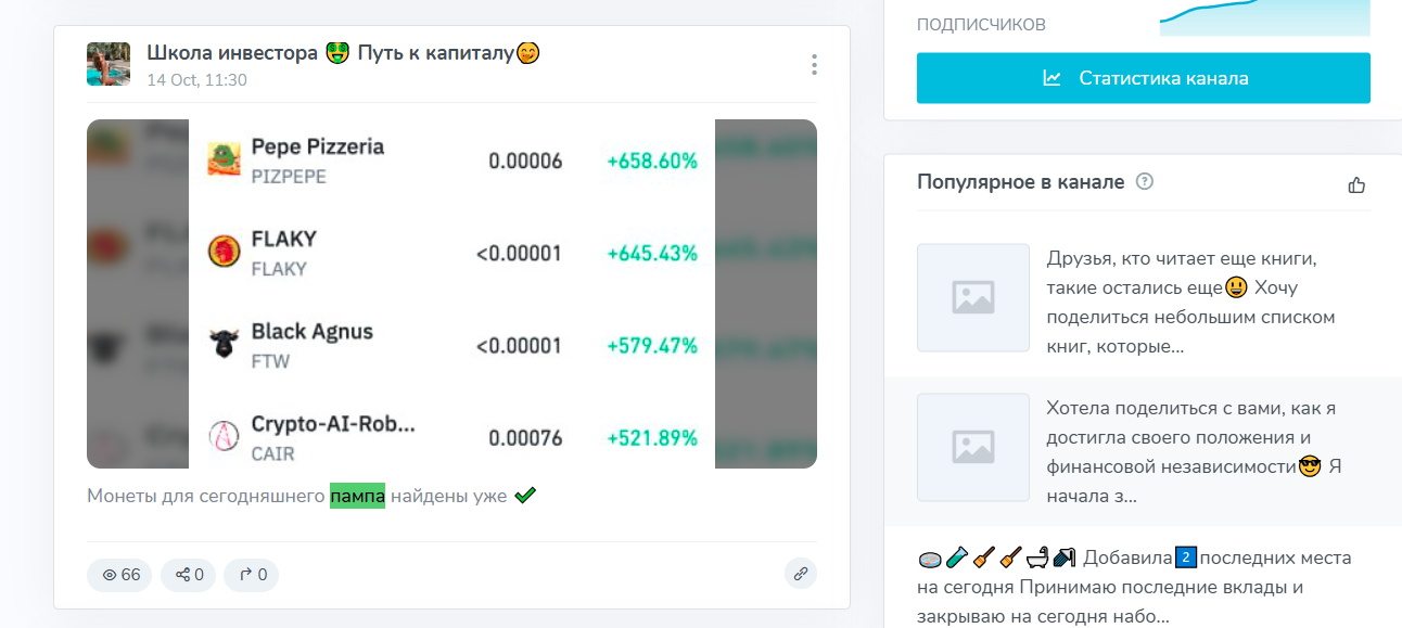Есть даже объяснение тому, как произойдут волшебные превращения: на канале регулярно появляются сообщения о пампе монет, наборах на инвестиционные сессии и последних местах — классический прием давления срочностью, рассчитанный на эмоциональное решение.