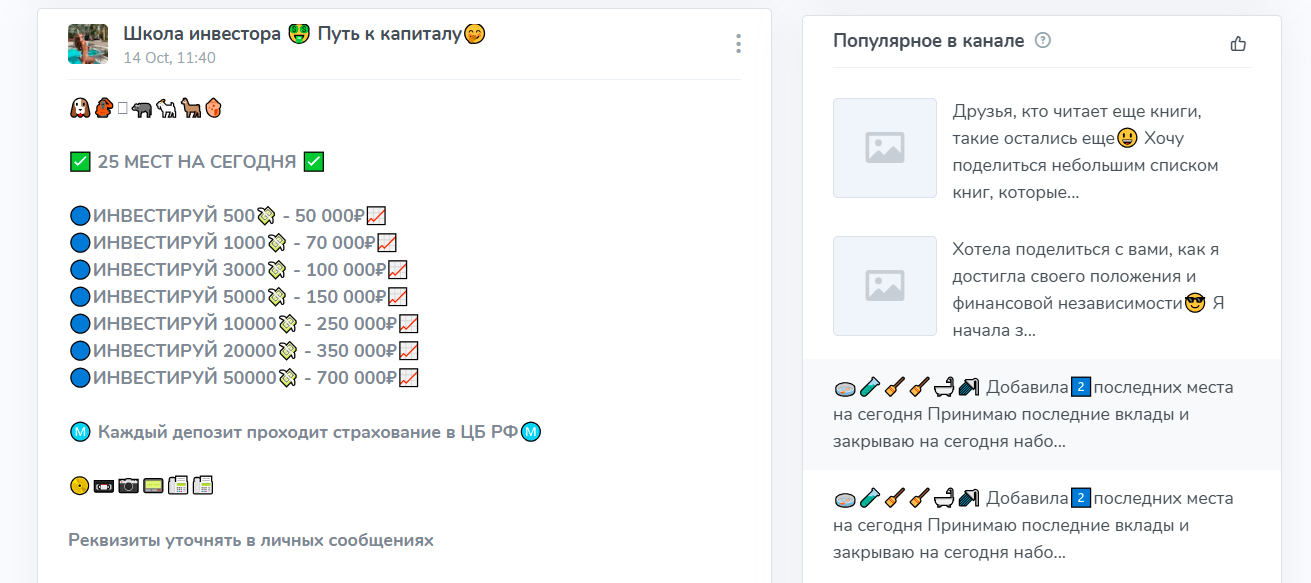 Сама схема, по которой якобы раскручивают депозиты, хорошо известна: каналы всплывают под новыми именами, обещают быстрый доход, собирают деньги и исчезают, оставляя скриншоты и мотивационные посты.
