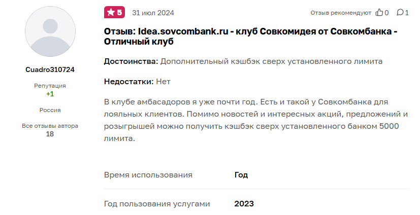 В целом репутация у проекта позитивная. Независимые источники высоко оценивают работу «Совком Идея» от «СовкомБанка».