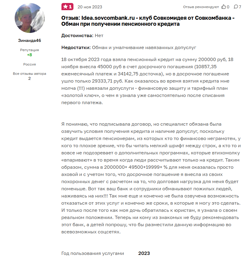 - В отзывах о Idea SovcomBank встречаются жалобы на навязанные дополнительные услуги. Соответственно, неопытные пользователи могут оформить ненужную им функцию.