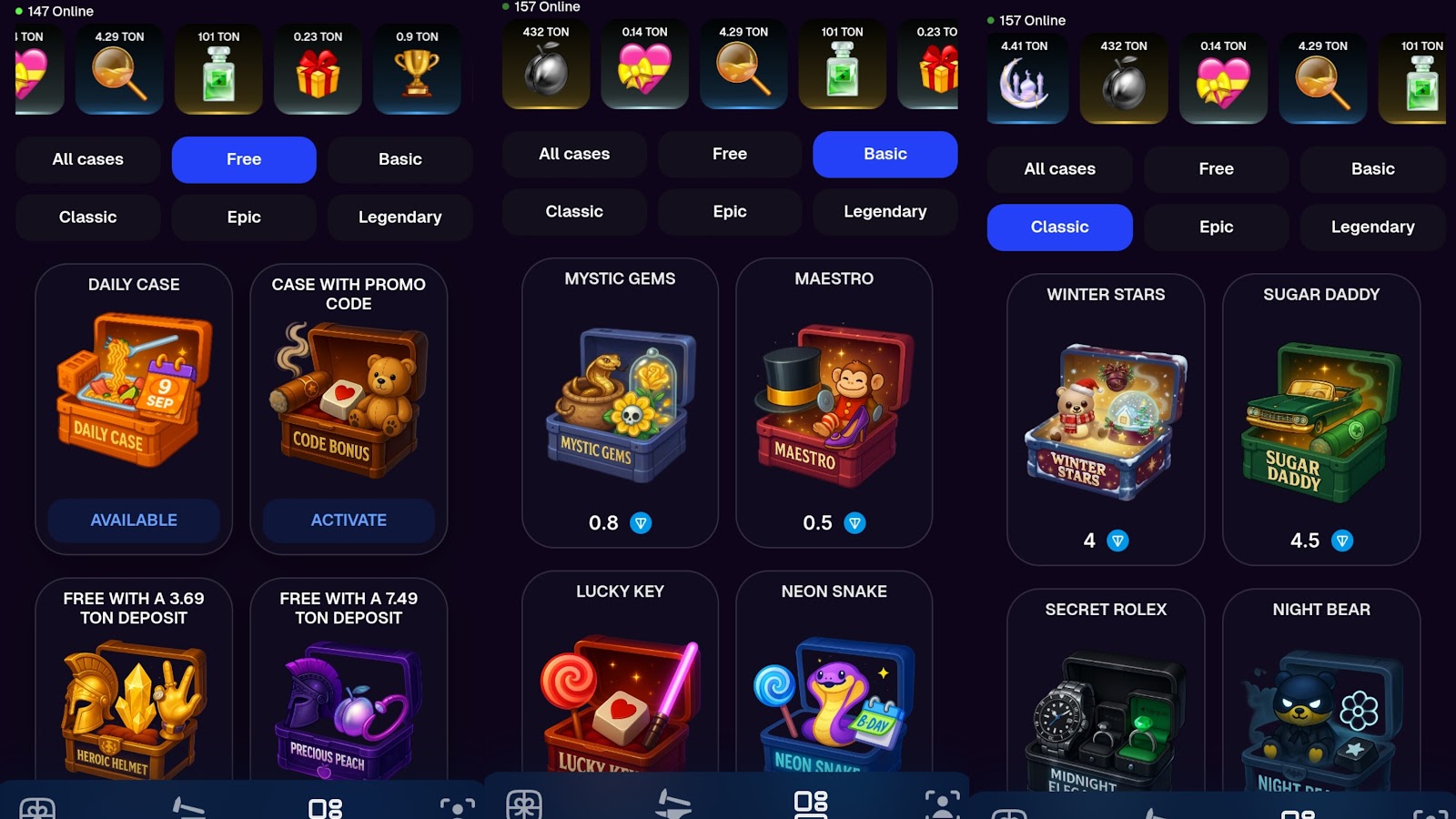 - Free/Бесплатные. Это Daily Case, который открывается один раз в день. Также Case with Promo Code, который доступен со специальным кодом;