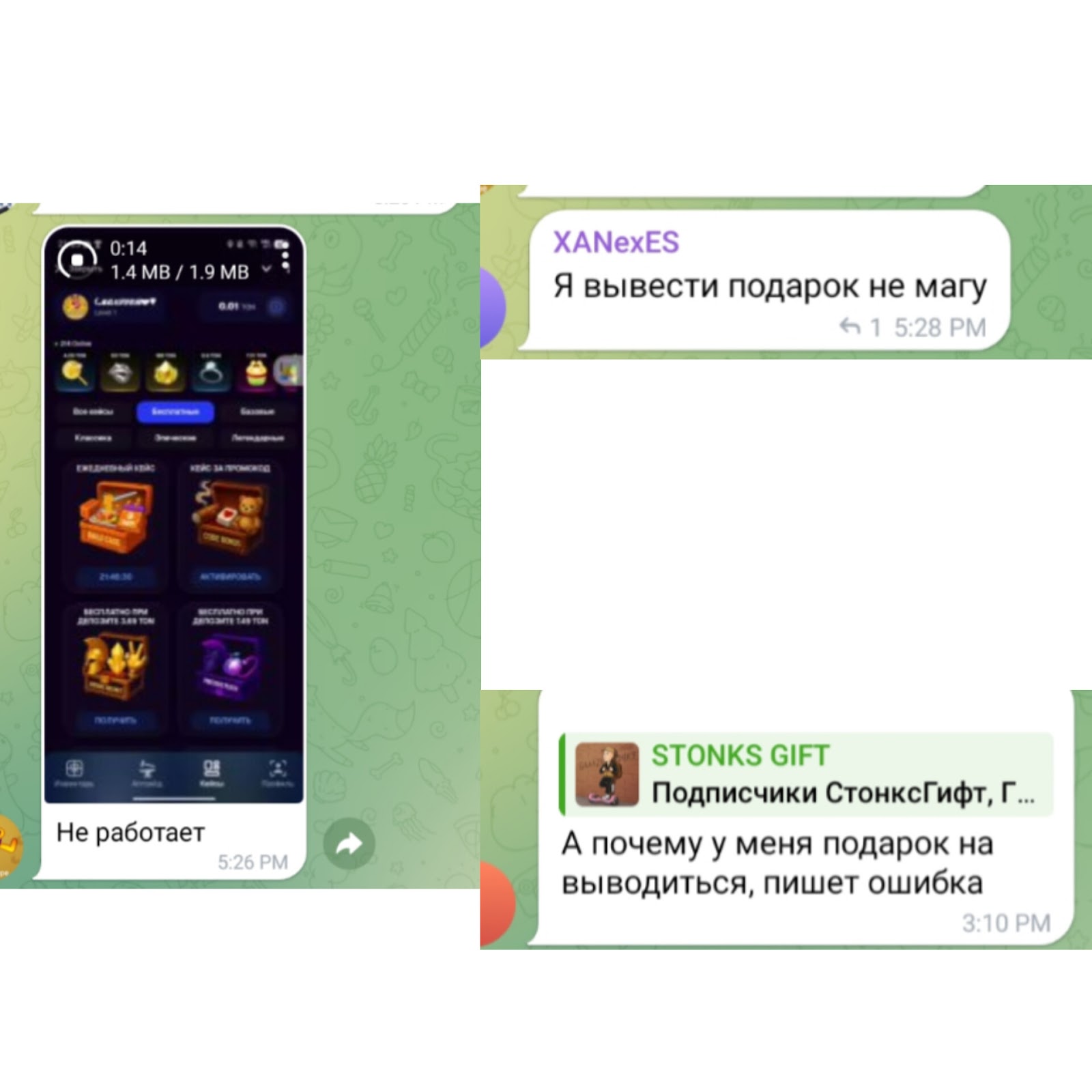 Стонксгифт привлек более 62 тыс. человек, и использовать бота можно бесплатно. Однако некоторые пользователи сталкиваются с трудностями во время вывода призов, и из других сомнительных моментов мы выделили: