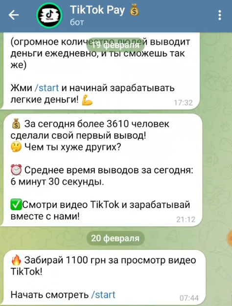 Обзор проекта Tik Tok Pay: отзывы реальных пользователей, выплачивает ли деньги телеграм-бот Тик Ток Пэй