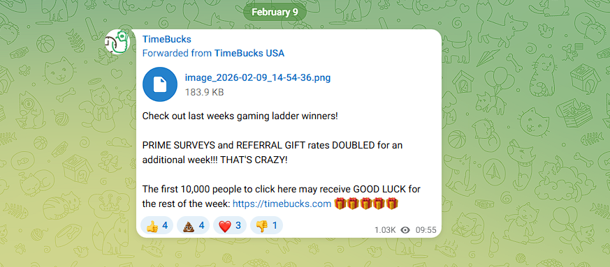 У этого сервиса есть ТГ-паблик с 99к подписчиков, который ведется на английском – timebucksoffical. Судя по грамотным фразам и сленгу, делает это либо носитель языка, либо искусственный интеллект.