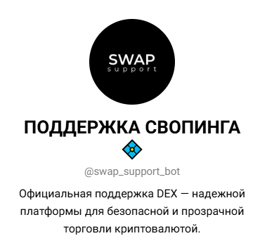 Связаться с поддержкой можно только одним способом, через телеграм-бота – swap support bot.