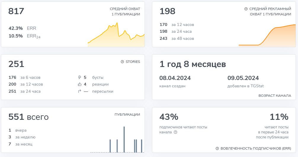 Аудитория телеграм-канала «Зюльганов про удаленку» составляет около 2 тыс. подписчиков. Публикации в среднем читают примерно 200-250 человек каждый день, показатель ERR – 42%, говорит о средней вовлеченности.