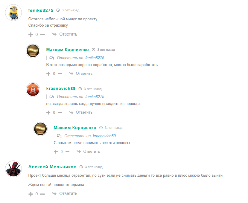 Отзывы о проекте неоднозначные. Первые участники подтверждали высокую доходность и отсутствие задержек, что логично для стартовой фазы хайпа. Многие пользователи отмечают, что понимали риски, а вложения оценивали как игру с непредсказуемым финалом.