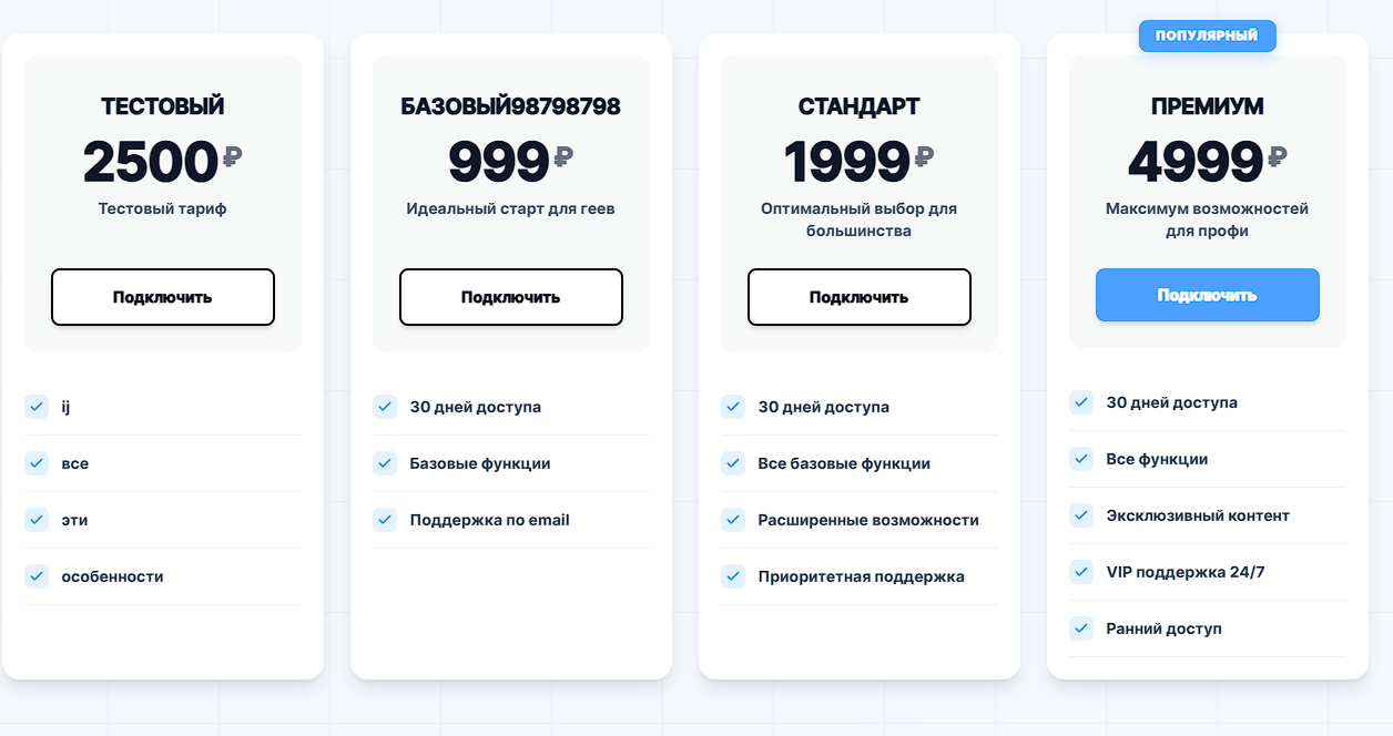 - Тестовый тариф за 2500 рублей. Что именно здесь предлагает создатель, неясно, так как сайт проработан плохо;
