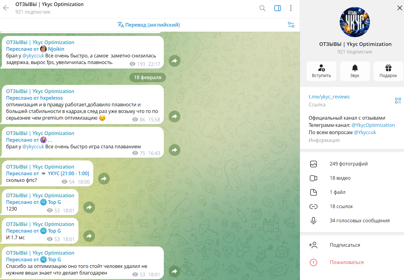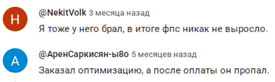 - Услуги описаны общими формулировками. Обещают рост FPS, снижение задержек и глубокую настройку системы. Однако конкретных технических отчетов или измеримых доказательств результата не будет. Все строится на скриншотах и отзывах в самом канале – проверить их подлинность невозможно.