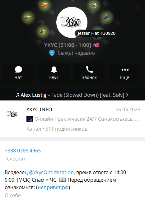 О владельце проекта известно мало. Основной контакт — Telegram-аккаунт @ Ykyccuk. Имени, фамилии, юридических данных об ИП или информации о компании в открытом доступе нет. Судя по контенту, проект ведет один человек или небольшая команда, но подтверждений этому мы не нашли.