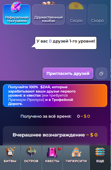Дополнительно у проекта есть реферальная система с несколькими уровнями. Ее смысл стандартный: рост базы обеспечивается не органикой, а привлечением новых участников, за которых начисляются бонусы и денежные вознаграждения. Такая архитектура напрямую завязана на постоянный приток аудитории и оборот внутриигровых предметов, иначе доходность механик падает.