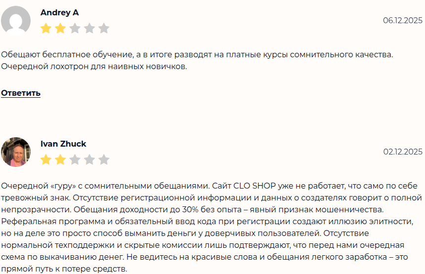 В сети есть негативные и положительные отзывы о школе Education classic ru Александра Куроптева. В отрицательных фидбеках бывшие студенты пишут про бесполезность курсов.