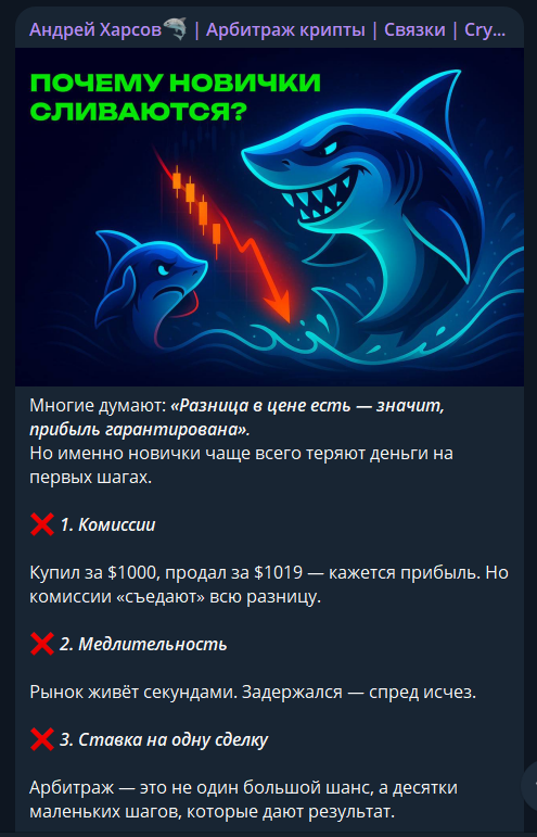 Андрей Харсов Арбитраж крипты Связки CryptoShark — Телеграмм-канал арбитражника, который предлагает подписчикам бесплатные связки. Он обещает возможность стабильно зарабатывать на любом рынке и без специальных знаний. Рассмотрим, как он работает и стоит ли ему верить.
