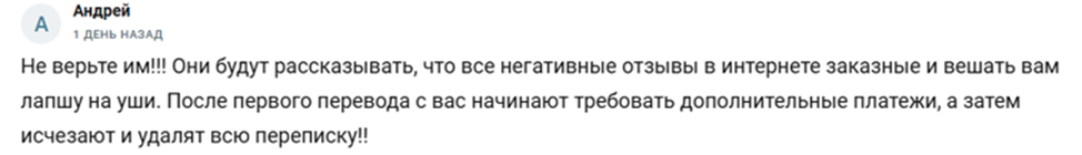 - доказательств, что Андрей Морозов – не мошенник, а реально торгует и не присваивает деньги себе, нет, что говорит о потенциальных рисках.
