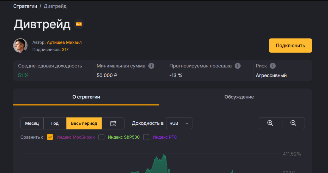 Автора можно считать опытным, так как он публиковал свои стратегии на разных площадках. Подписчики могли приобрести доступ к платформе и копировать его сделки за деньги.