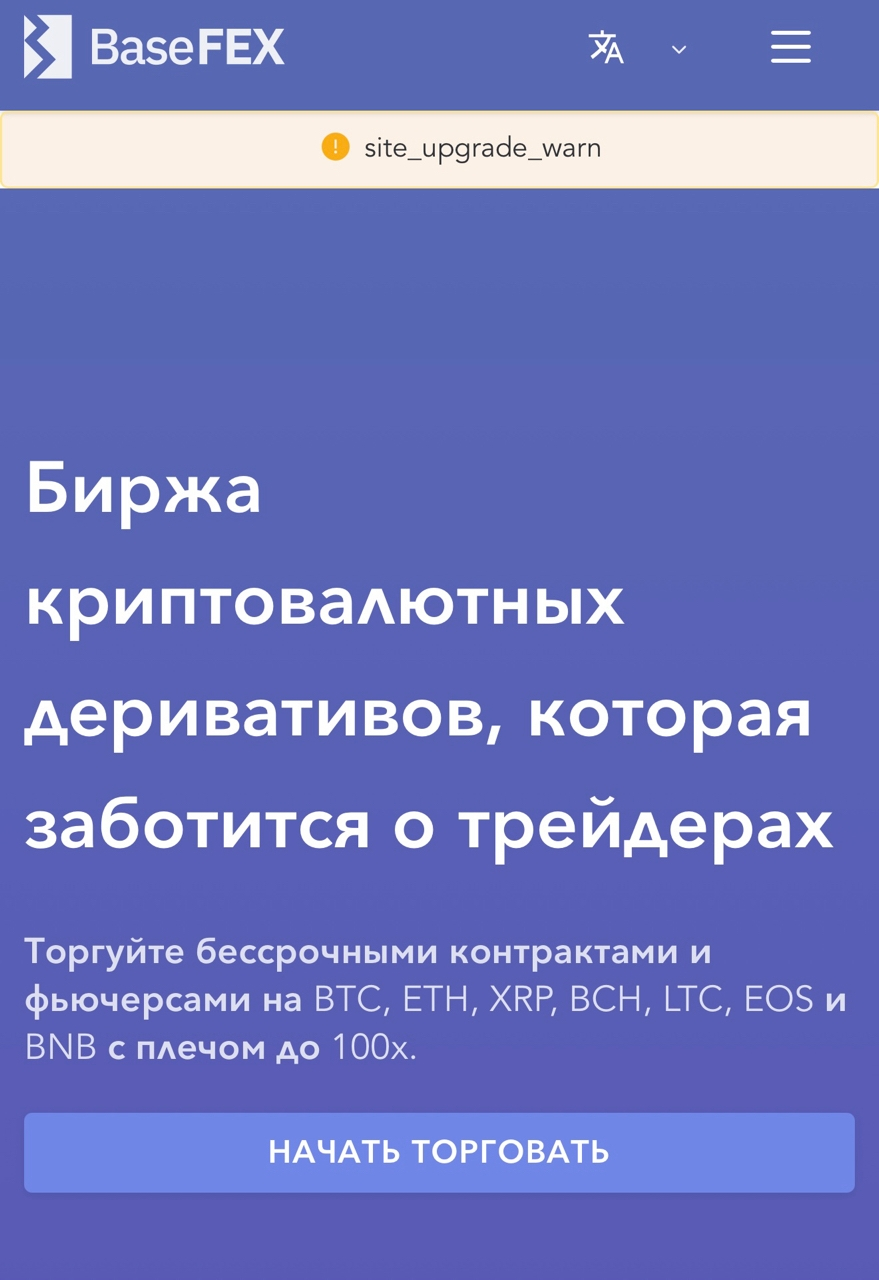 На Basefex com можно торговать самыми популярными видами криптовалют, а также фьючерсами на BTC, XRP, ETH, BCH, LTC, EOS и BNB. Детального списка монет в открытом доступе нет, с ним можно ознакомиться после регистрации. К слову, КУС-верификации на бирже нет, после регистрации можно сразу же начинать торговать. С одной стороны, это очень удобно, с другой – вызывает серьезные сомнения в безопасности и чистоте крипты.