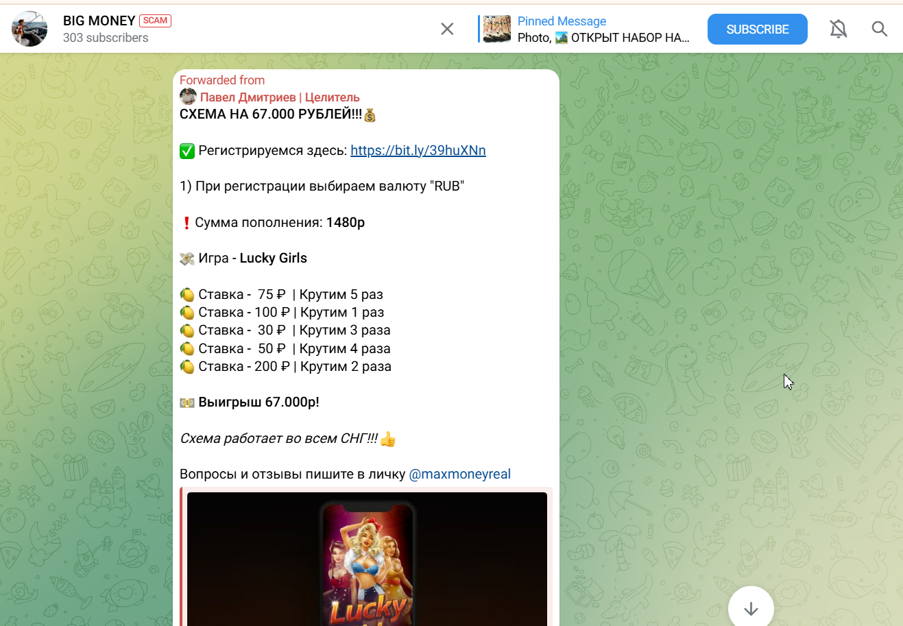 Big money official – телеграм-канал о заработке на онлайн-казино. Проект появился в сети в 2021 году. Его автор Макс Киреев рекламировал различные онлайн-казино и рассказывал о стратегиях гарантированного выигрыша в них. Наверняка многие слышали такую версию, что все казино работают по заданной схеме, а потому их буквально можно обмануть и постоянно выигрывать. Сегодня уже стало известно, что все это не работает. Однако, до сих пор еще в сети появляются сообщества и отдельные лица, которые наживаются на этом заблуждении. Одним из таких и является канал BigMoney.