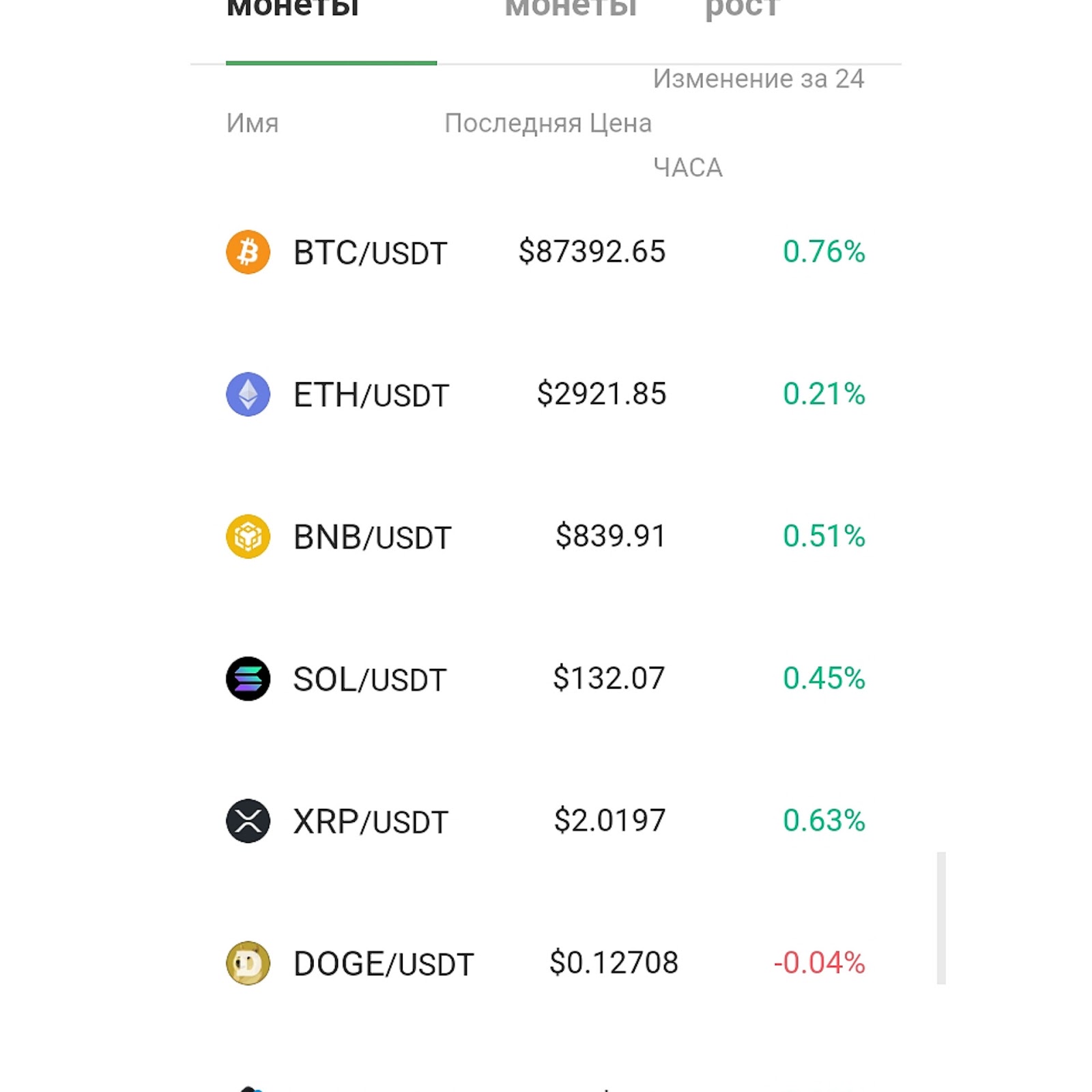 • Solana\USDT;