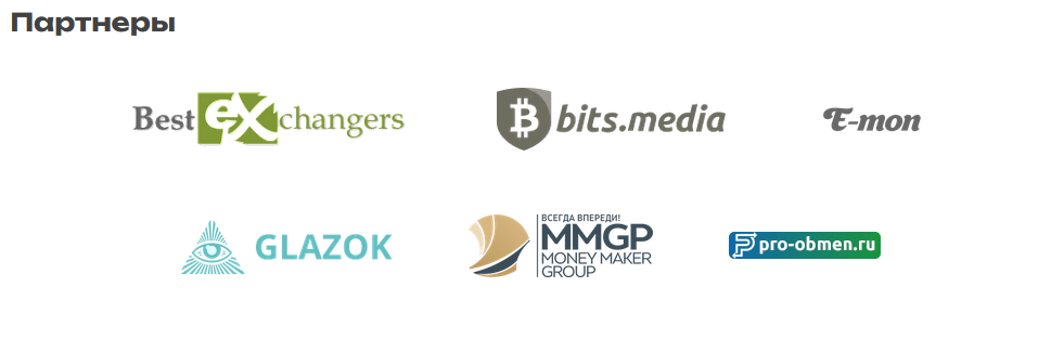Второй по важности блок на главной страница — партнеры. Это крипто агрегаторы, форумы и прочие площадки, где у обменника Boomerang есть своя страница или профиль. Среди них BestExchangers, Bits Media, E-Mon, Glazok, MMGP и Pro-Obmen. Но BestChange в списке нет.