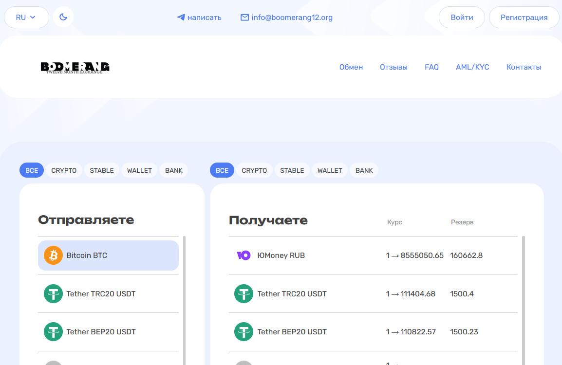 Крипто обменник Boomerang12 Org: обзор сервиса Бумеранг, отзывы клиентов Boomerang 12