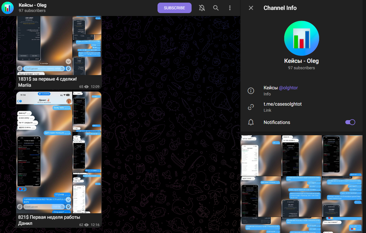 Кейсы Oleg — Телеграмм канал, в котором команда трейдеров предлагает сигналы для криптовалютных сделок. За свои труды от подписчиков просят 30% дохода после завершения сессии. В сети пока нет отзывов о проекте. В обзоре поговорим о том, какими методами привлекают в сообщество, и выясним, можно ли заработать по сигналам Олега.