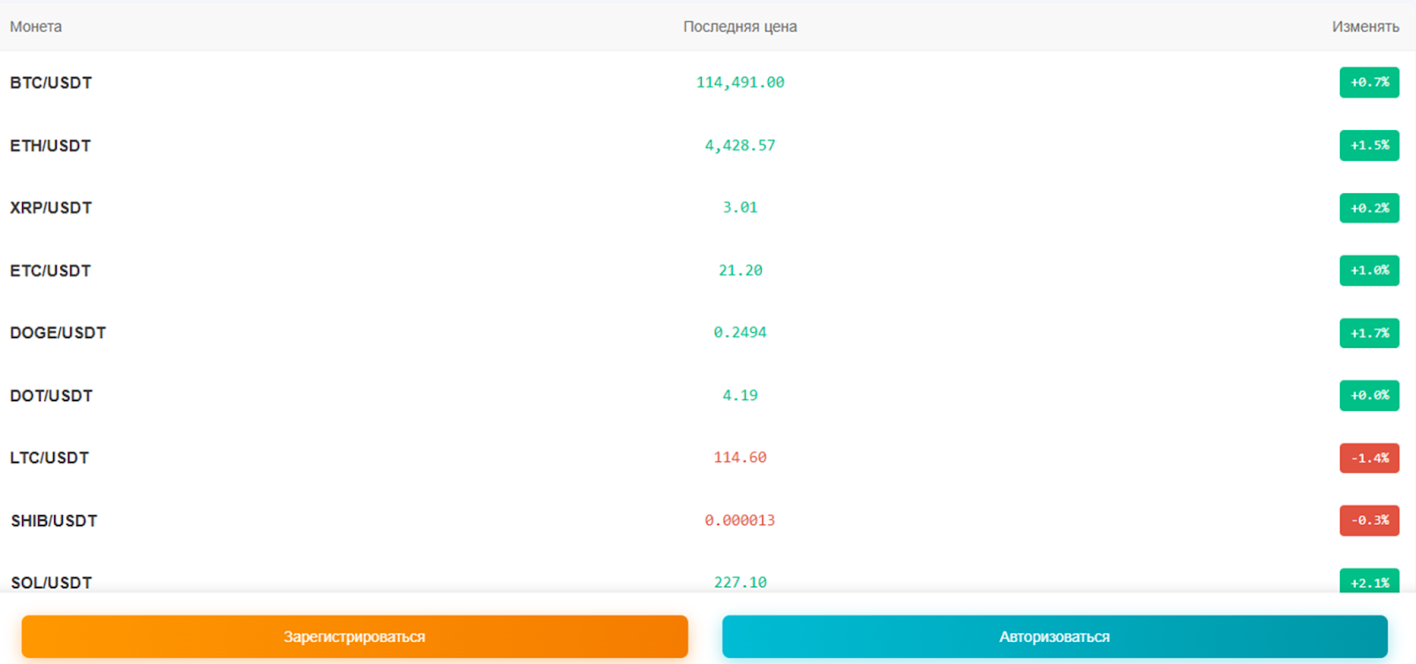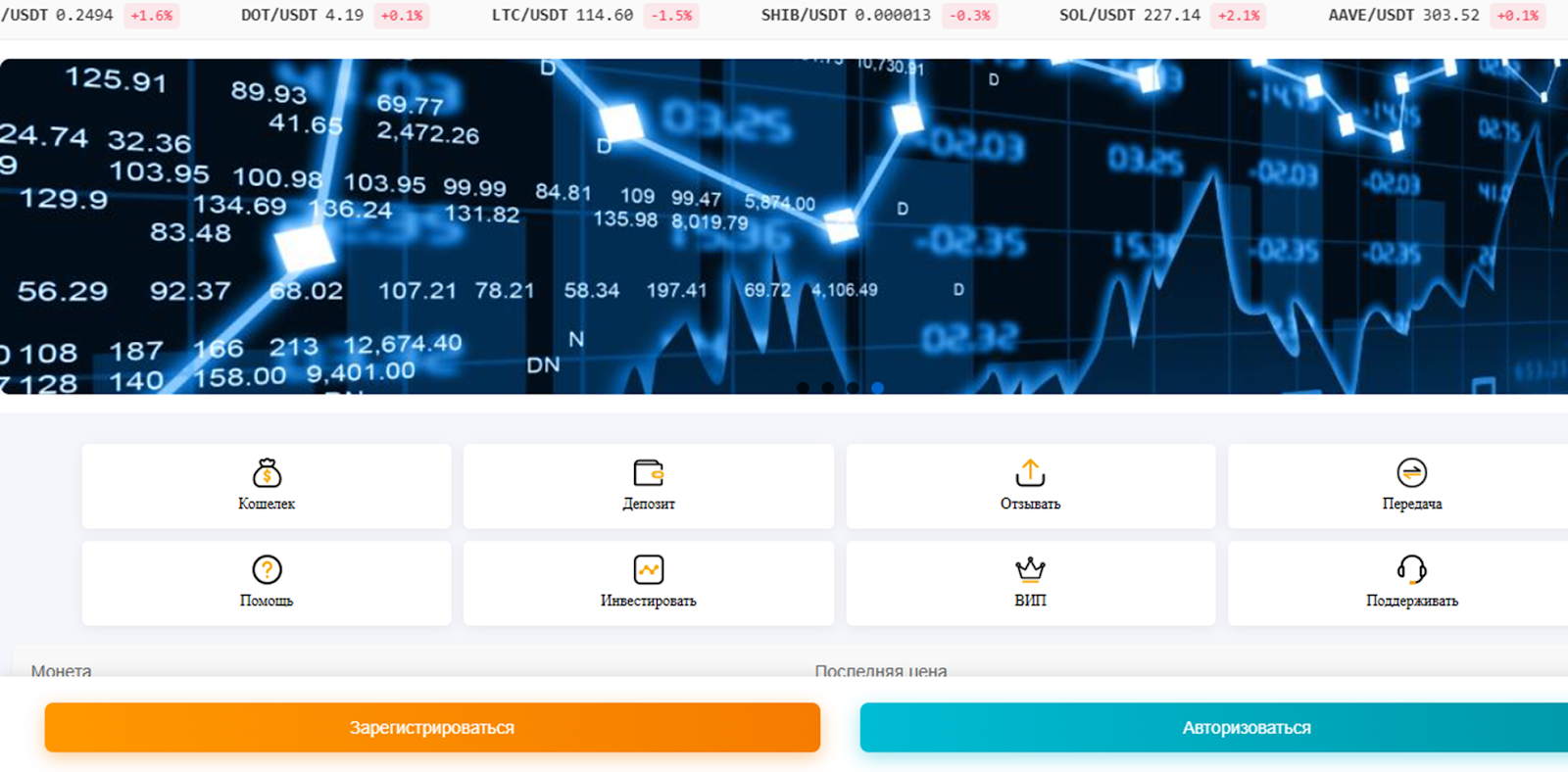 Такая низкая прозрачность сервиса наводит на закономерные подозрения – стоит ли доверять свои личные данные подобному проекту. После меню, которое невозможно открыть, на сайте дана информация о торговых активах.Особого разнообразия здесь не наблюдается – предстоит торговать валютными парами крипта-USDT. Но тип терминала, размер комиссионных и минимальный депозит остаются загадкой. Контактов техподдержки на сайте тоже нет, поэтому при проблемах с доступом в аккаунт получить обратно свои средства получится едва ли.