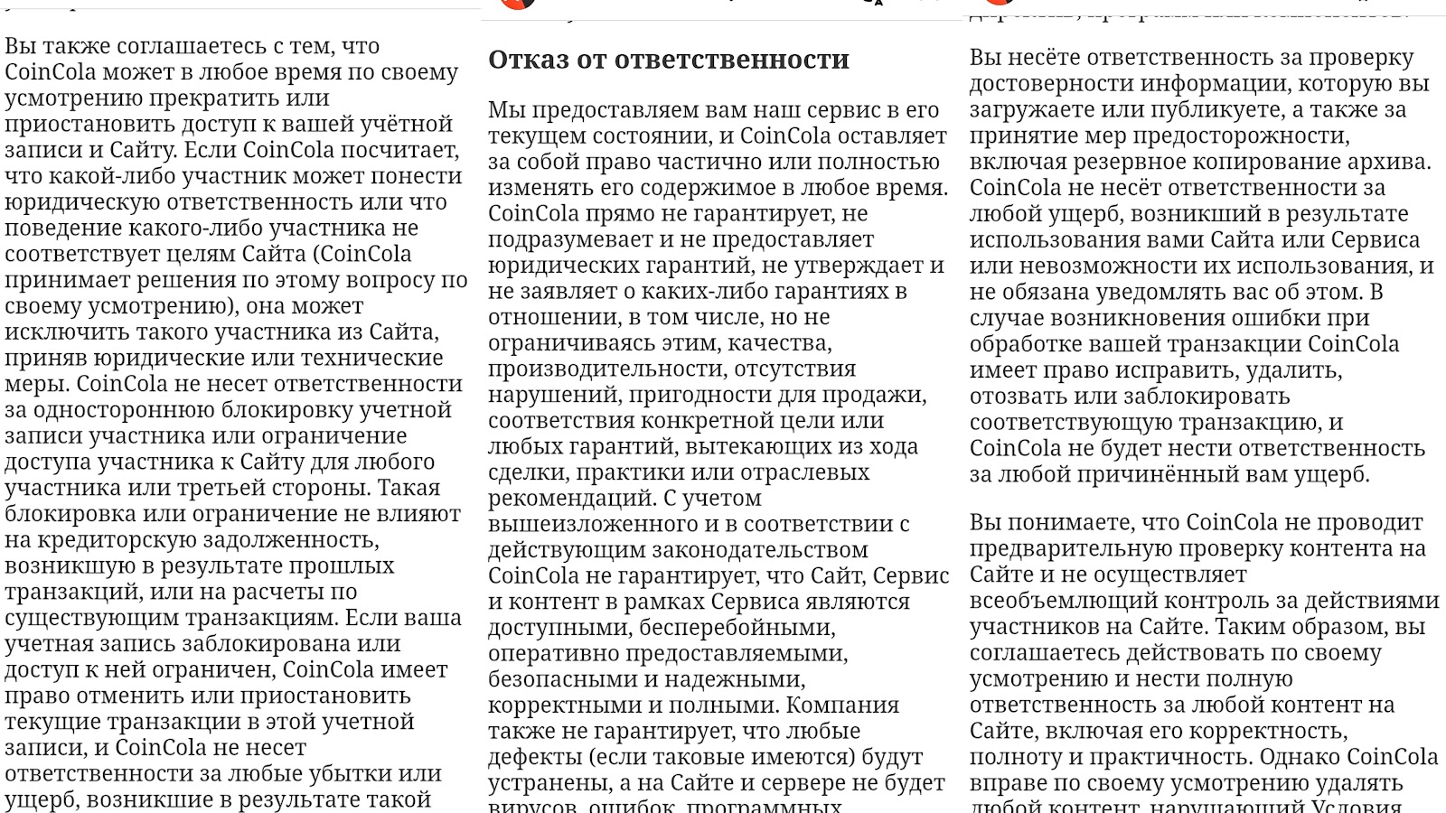 На просторах интернета встречаются отзывы о том, что у Coincola есть признаки скама.