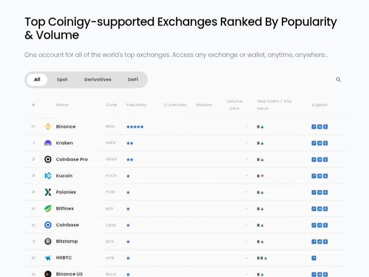 Площадка предлагает единый кабинет для работы сразу с сорока пяти и более биржами. Владельцы ресурса позиционируют его как универсальный инструмент управления криптопортфелем, благодаря которому трейдеру не нужно переходить между вкладками. Проект Coinigy inc часто хвалят за доступ к Binance, Coinbase, KuCoin, Kraken и еще десяткам площадок из одного аккаунта.
