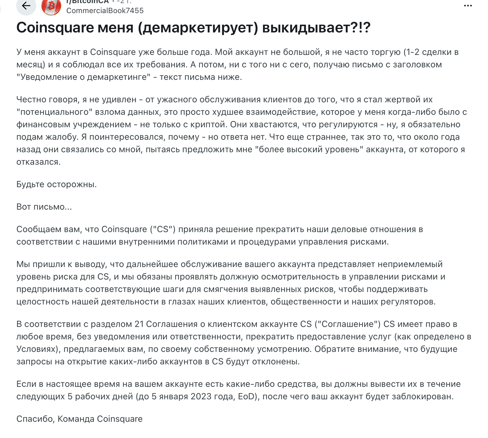 Если вам доводилось иметь дело с coinsquare, то поделитесь своим опытом в комментариях. Пожалуйста, помогите другим криптанам принять взвешенное решение.