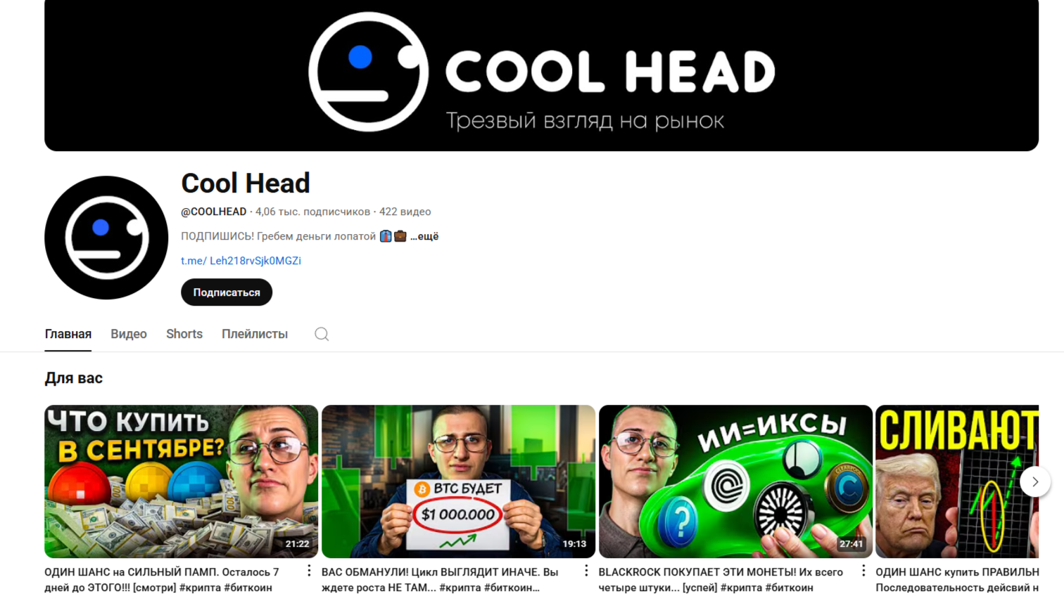 Деятельность канала «Cool Head Криптовалюта, инвестиции и трейдинг»