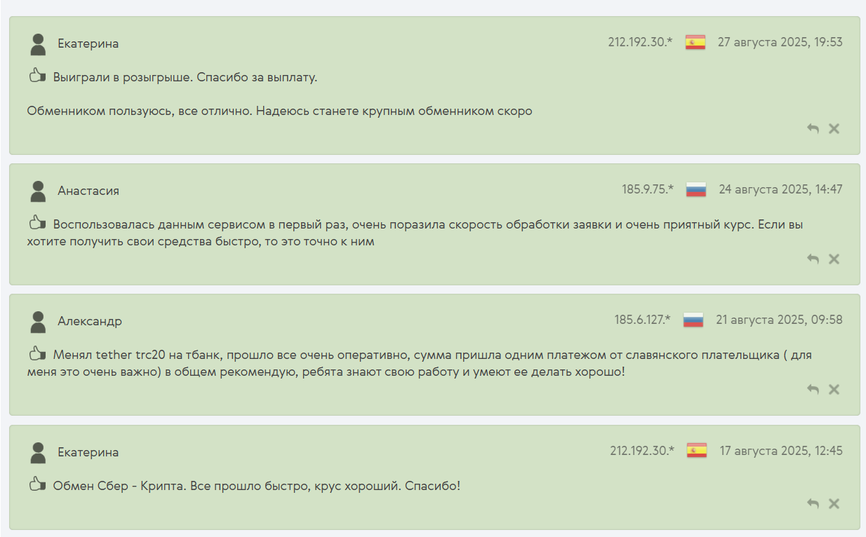 О криптообменнике Cooperation отзывы в сети только положительные. Все пользователи остались довольны качеством оказанной услуги. Трейдеры пишут, что обмены проводятся быстро и без каких-либо проблем. Сотрудники поддержки и сервиса в целом доброжелательны и не отказывают в помощи.