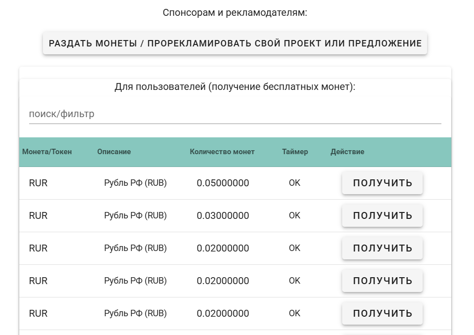 • есть раздел FREECOINS, в котором любой желающий может рекламировать свой проект, это криптокран, то есть можно зарабатывать на просмотре сообщений;