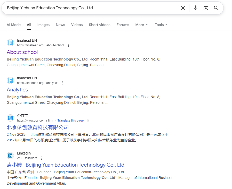 - юридическая регистрация Beijing Yichuan Education Technology Co., Ltd. используется массово мошенниками;