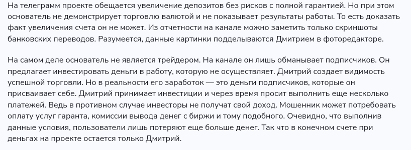 - Автор не предоставил финансовую отчетность. Автор телеграм-канала скрыл реальные цифры своей работы, что подтверждает факт вранья.