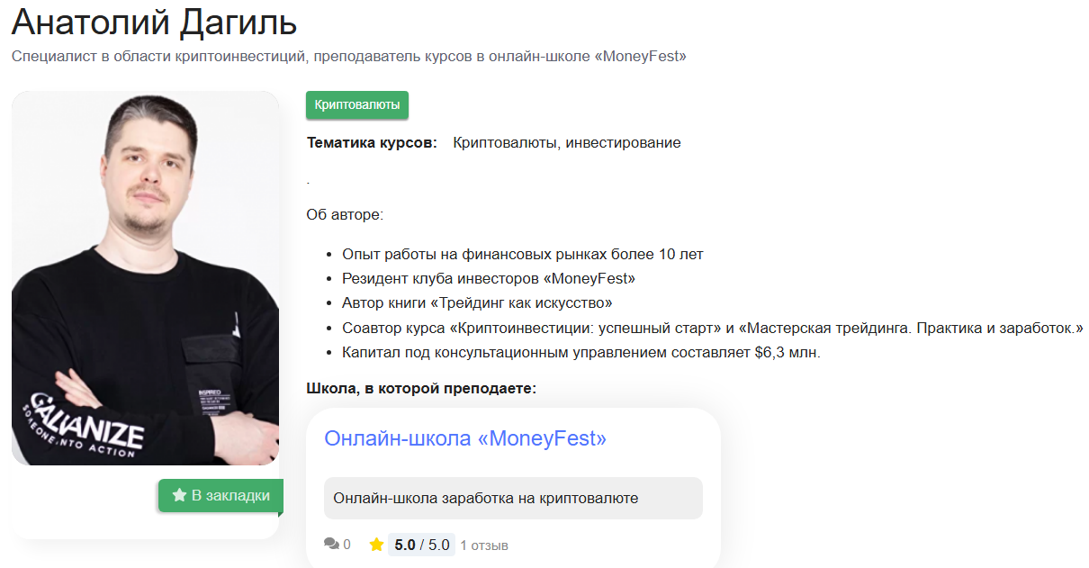Анатолий Дагиль называет себя профессиональным трейдером с десятилетним опытом работы. Он написал книгу «Трейдинг как искусство» и заявляет, что управляет капиталом в $6,3 млн. Создал онлайн-школу Money Fest, в которой обучает торговле на криптобиржах. Создается впечатление, что перед нами человек с идеальной биографией и глубокими знаниями в торговле финансовыми активами. Мы решили копнуть поглубже и рассказать в этом обзоре, что на самом деле скрывается за этим известным в определенных кругах именем.