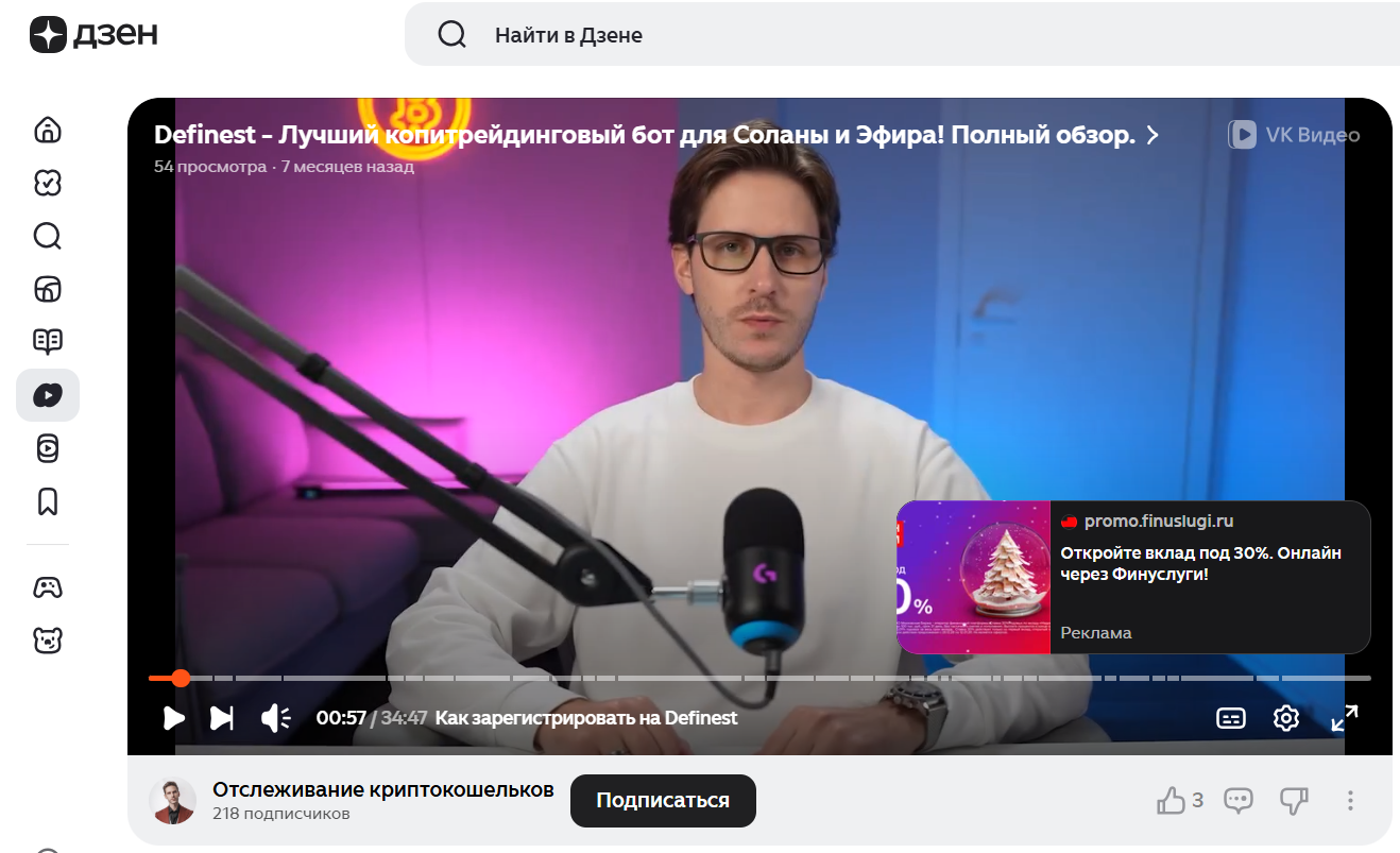 На январь 2026 года торговый инструмент Definest ai получает восторженные отзывы. В интернете публикуются видео-обзоры от публичных трейдеров, пошаговые гайды и пр. В, казалось бы, положительной репутации сервиса смущает одно – упоминаний бота слишком мало. Если бы программа соответствовала заявлениям о «лучшей и незаменимой в своей сфере», отзывов было куда больше.